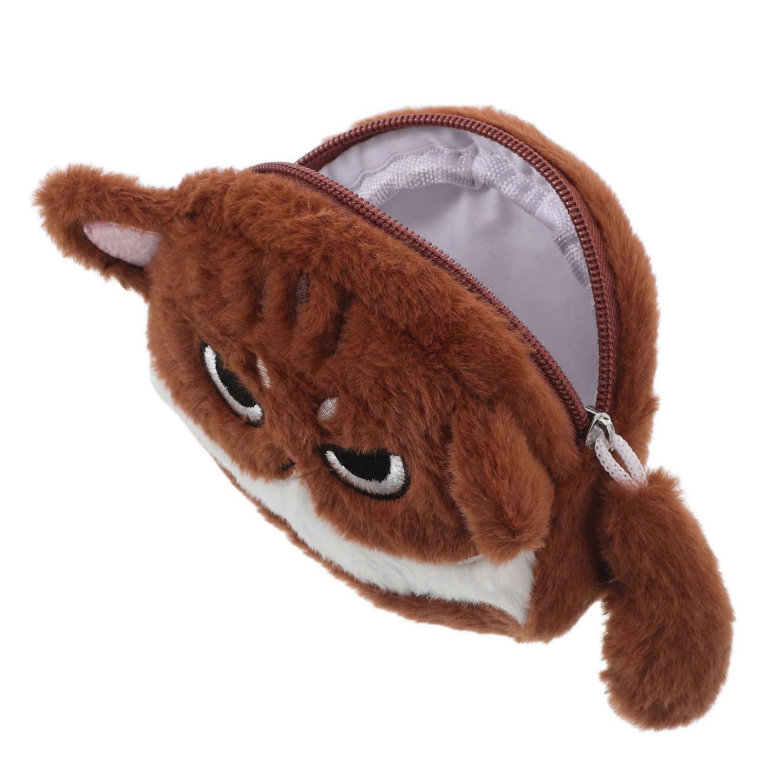 Brown Cat Plush Coin Purse for Storage Use 2Pcs Cartoon Makeup Wallet with Keys Space