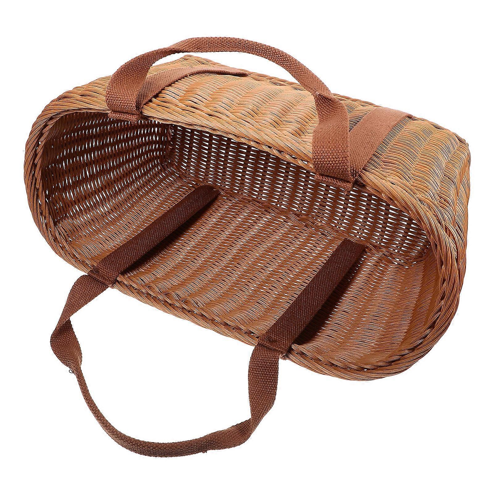 Brown Woven Basket for Picnics with Simulation Rattan Design Handheld Basket