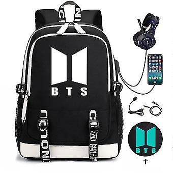 Bts حقيبة ظهر Usb القابلة لإعادة الشحن حقيبة ظهر كبيرة قدرة الطالب حقيبة المدرسة