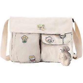 26-27 Canvas Crossbody -laukku Kawaii-pinneillä ja karhuriipuksella, rento crossbody-laukku, monitaskuinen olkalaukku koululaisille ja teini-ikäisille