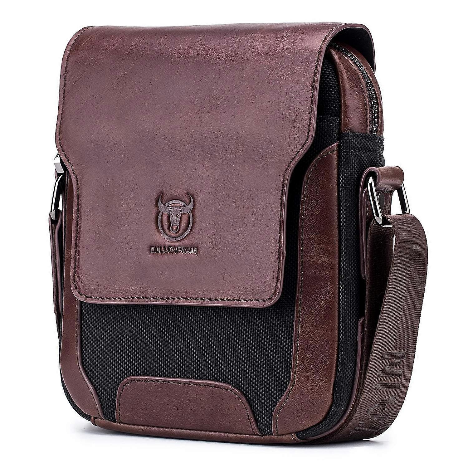 BULLCAPTAIN 999 Cowhide Leather Messenger Bag Zipped Pockets Crossbody Purse Bag for Work Business T