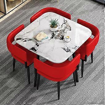 Dining Table Set for 4 with Stable Metal Frame, Easy Clean Rock , Compact Square Design, Red