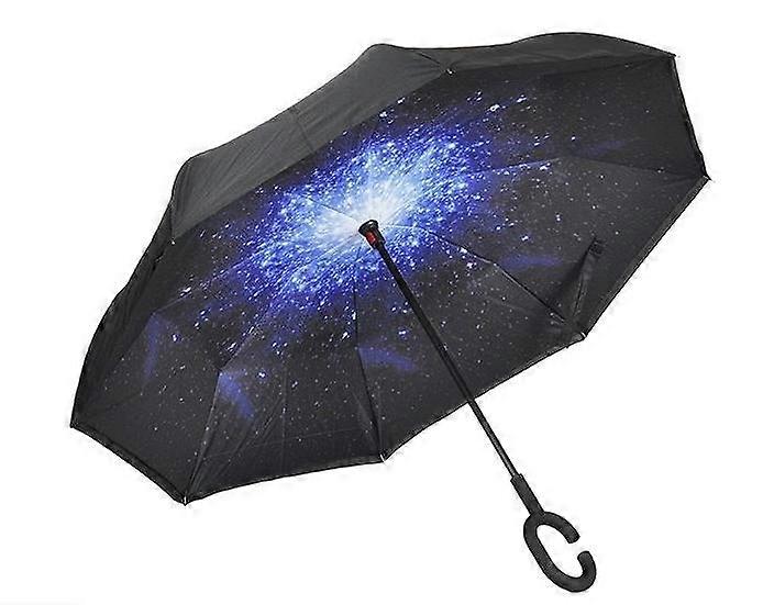 Features: Drip Free - Unique design double layer inverted umbrella, lets you open from outside to inside and close from inside to outside, so you won't get wet whether you are getting in or out of the car or the house. Hands Free - Good for mums, students and business men alike, the unique C-shape handle can be hooked over your arm leaving your free for holding a baby, bag, briefcase or mobile phone. Windproof, waterproof and UV protected, its perfect for rainy or sunny days
