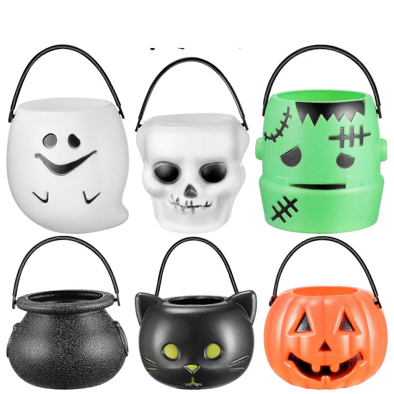 Cabilock 12PCS Halloween Candy Holder Pots with Pumpkin Ghost Skull Design and Handle for Trick or Treat Party Supplies