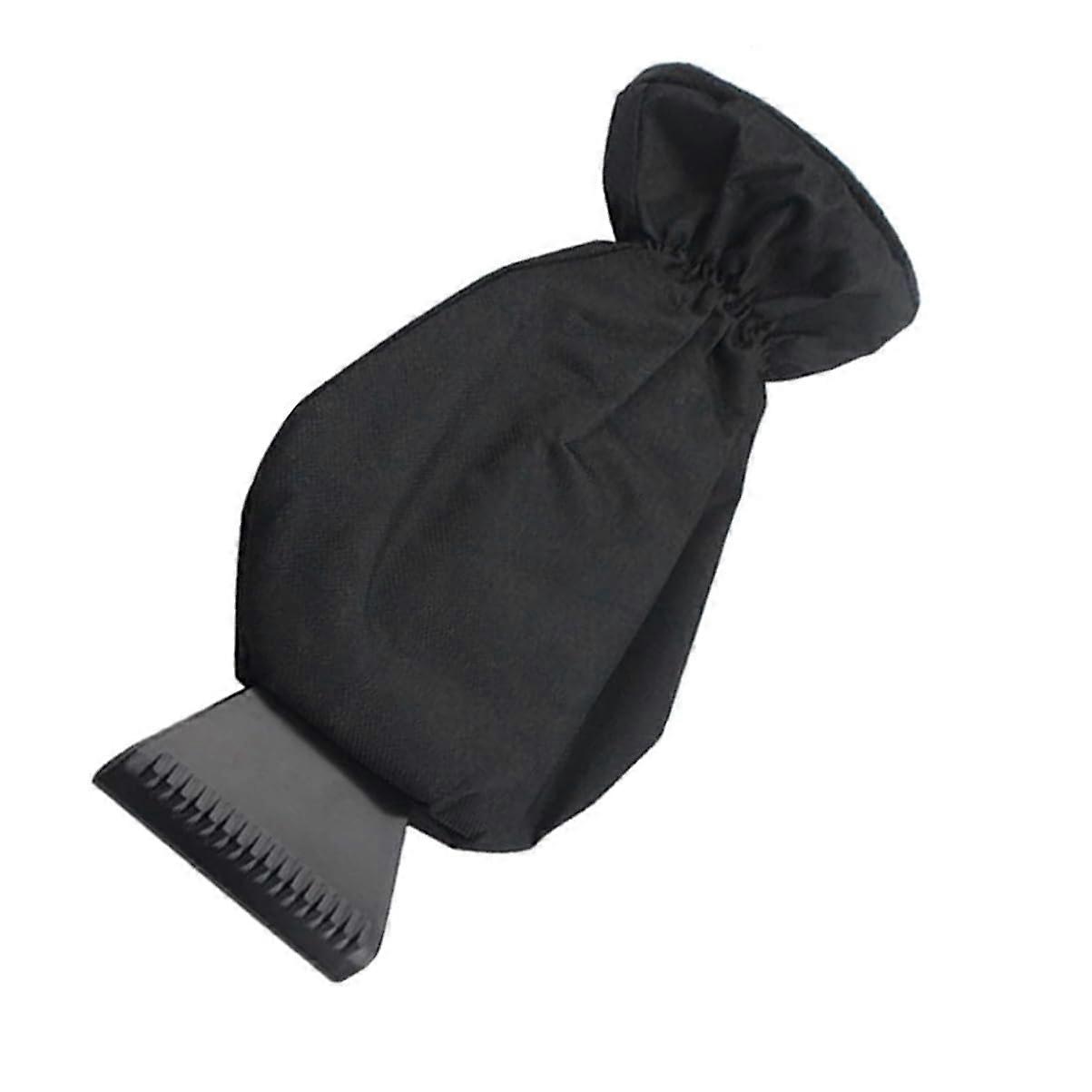 Car Ice Scraper with Glove and Lined Inner Lining, Elastic Band, Icebreaker Edge for Windscreen Snow and Frost Removal (Black)