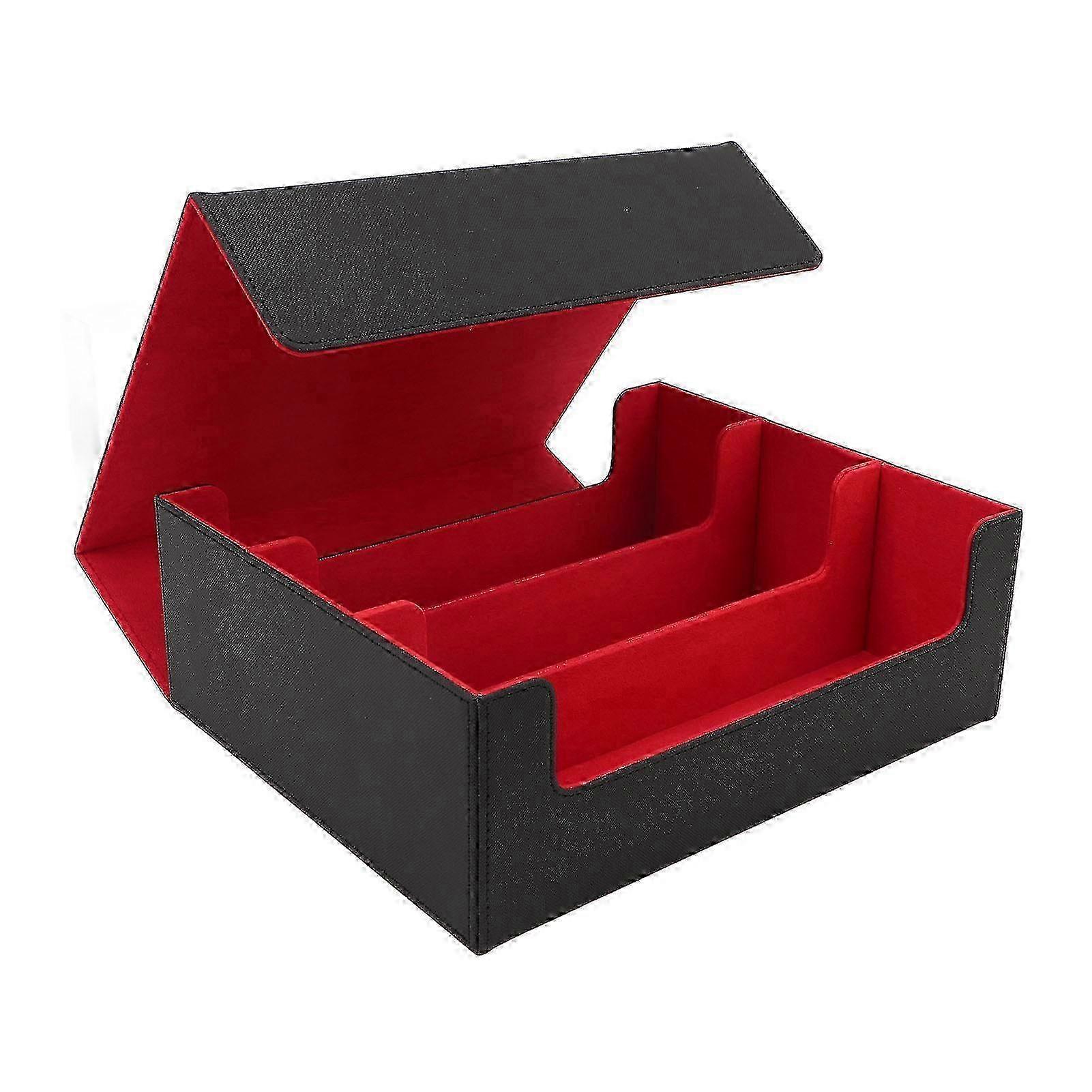 Card Deck Box 3 Rows Large Capacity Magnetic Closure PU Leather Card Deck Storage Case for Game Cards Tarot Cards Black Shell with Red Lining w