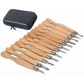 Carving knives, 12 - piece set with wooden handles, sharp blades, and a portable storage case