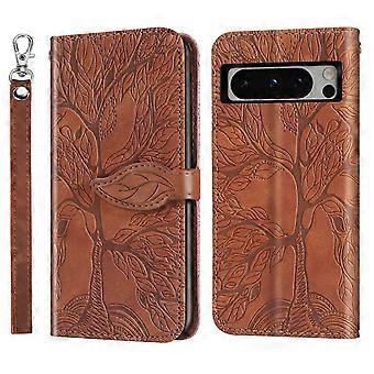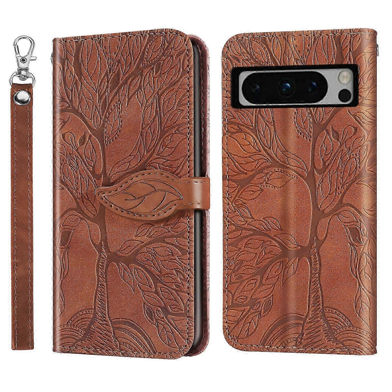 Case for Google Pixel 8 Pro 5G Kickstand Wrist Strap Flip Tree Embo...