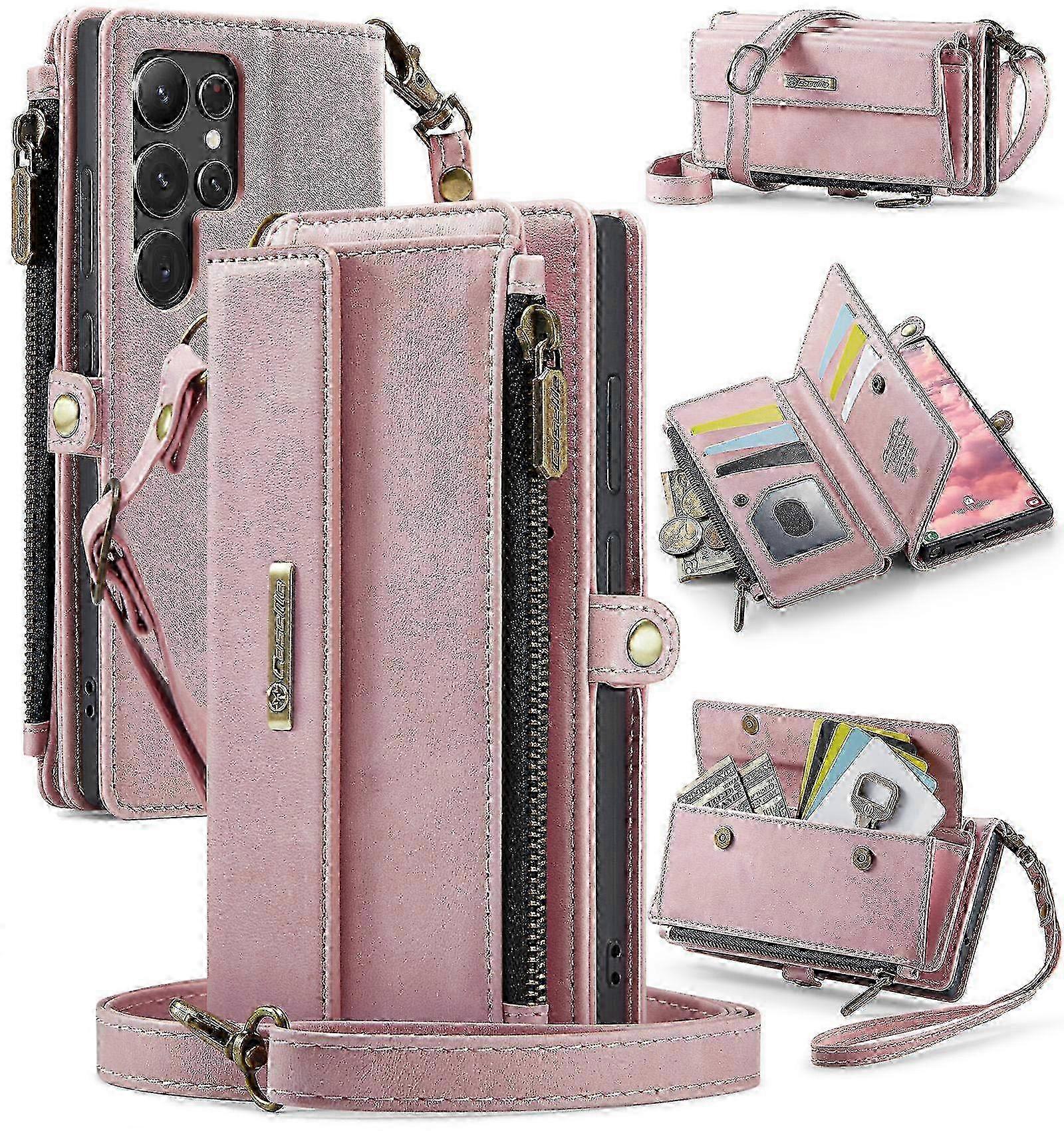 CaseMe C39 RFID Blocking Zipper Wallet Leather Phone Case with Crossbody Strap