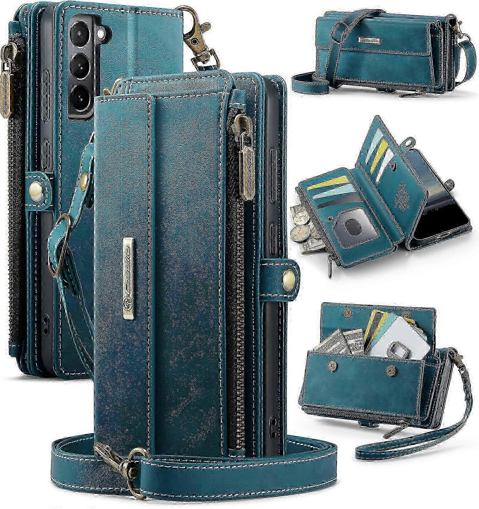 CaseMe C39 RFID Blocking Zipper Wallet Leather Phone Case with Crossbody Strap