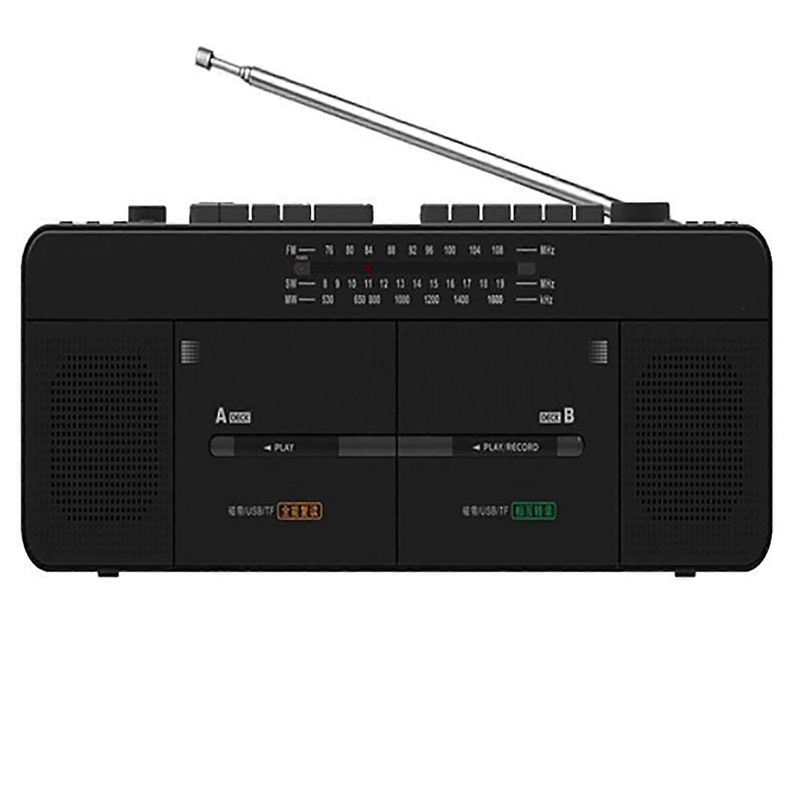 Cassette Boombox AM/FM Radio Recorder With Dual Tape Deck, Card Playback, Classic Style, 1Click Recording