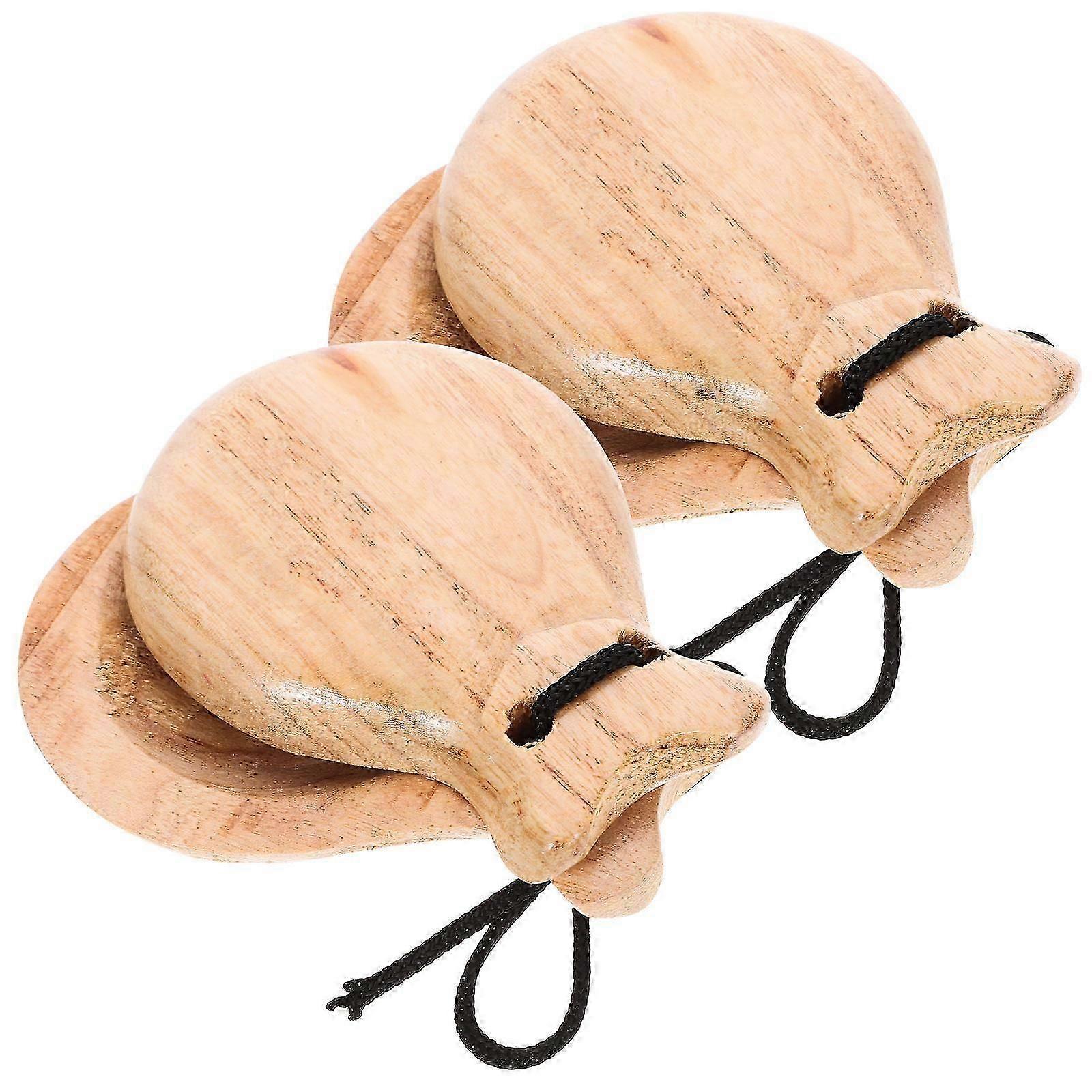 Wooden Castanets For Kids In Beige Designed For Stage Performances And Pair