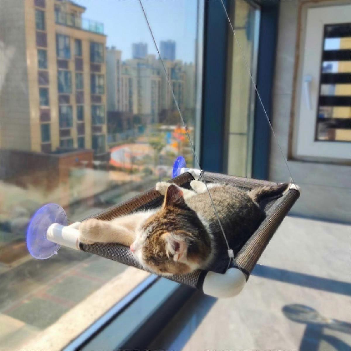 Cat Bed Window, Cat Window Hammock Window Perch, Safety Cat Shelves Space Saving Window Mounted Cat Seat for Large Cats (Beige Premium Set)