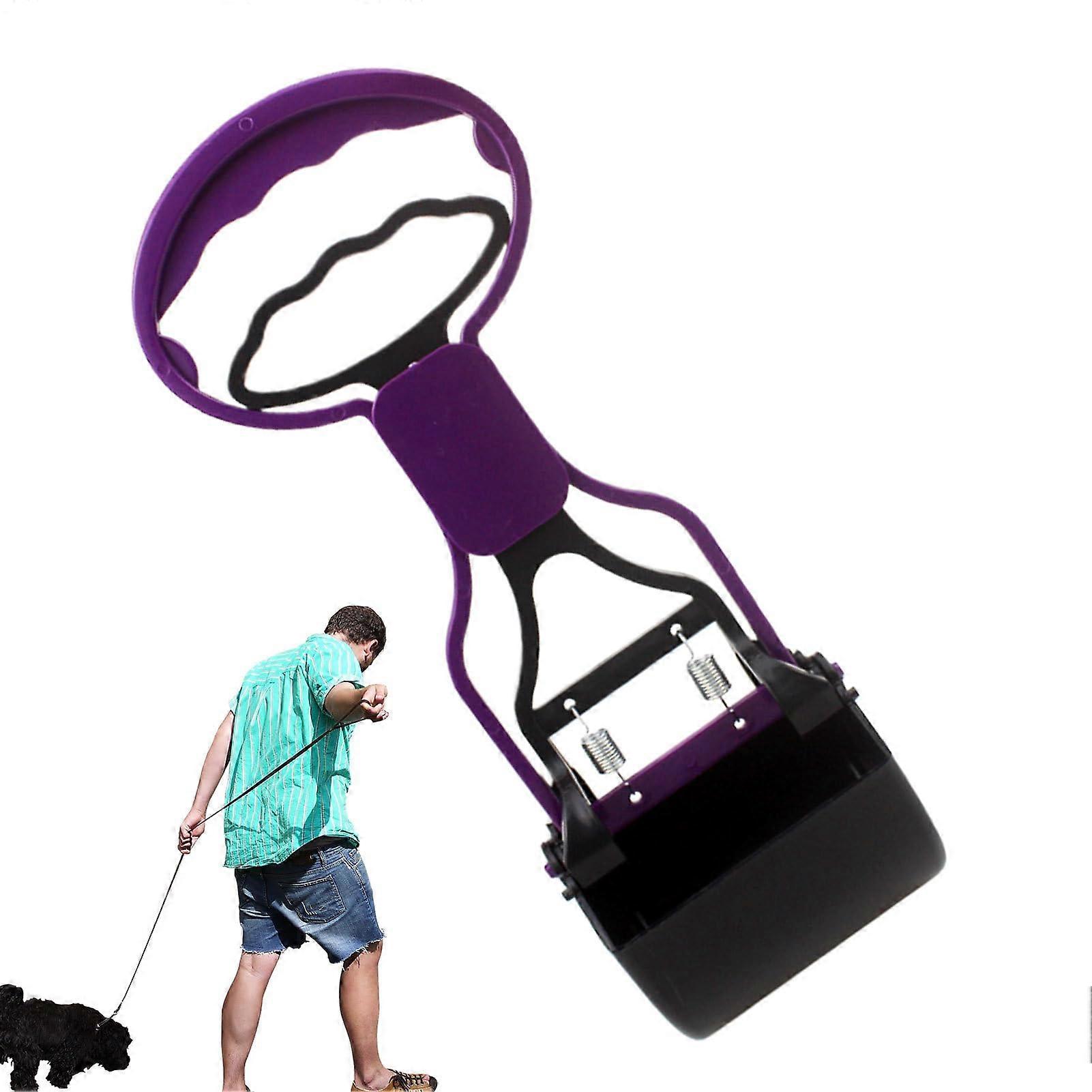 Cat Poop Scooper, Puppy Waste Grabber, Lightweight Telescopic Handle for Camping, Park, Garden, Lawn - Purple