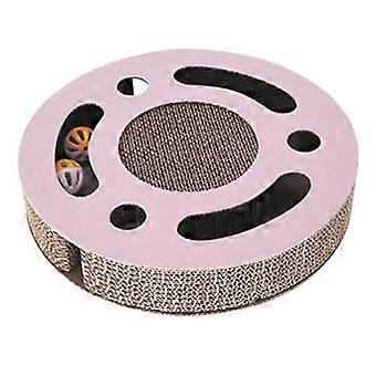 Cat Scratcher Pad Toy 3 in 1 Interactive Thickened Round Corrugated Kitten Scratching Toy with Bell Ball Pink
