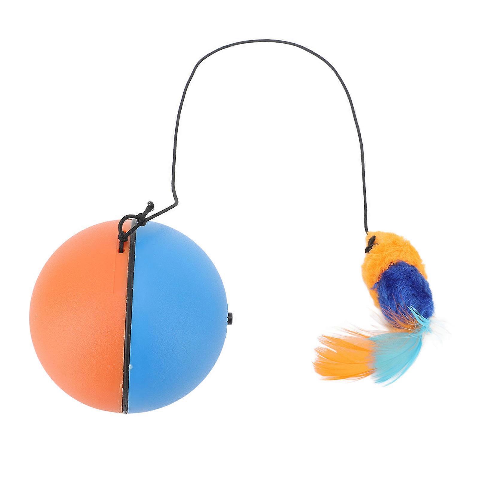 Cat Automatic Moving Ball with Plush Feather Pendant Intelligent Sensor Self Rotating Cat Toy Blue Orange