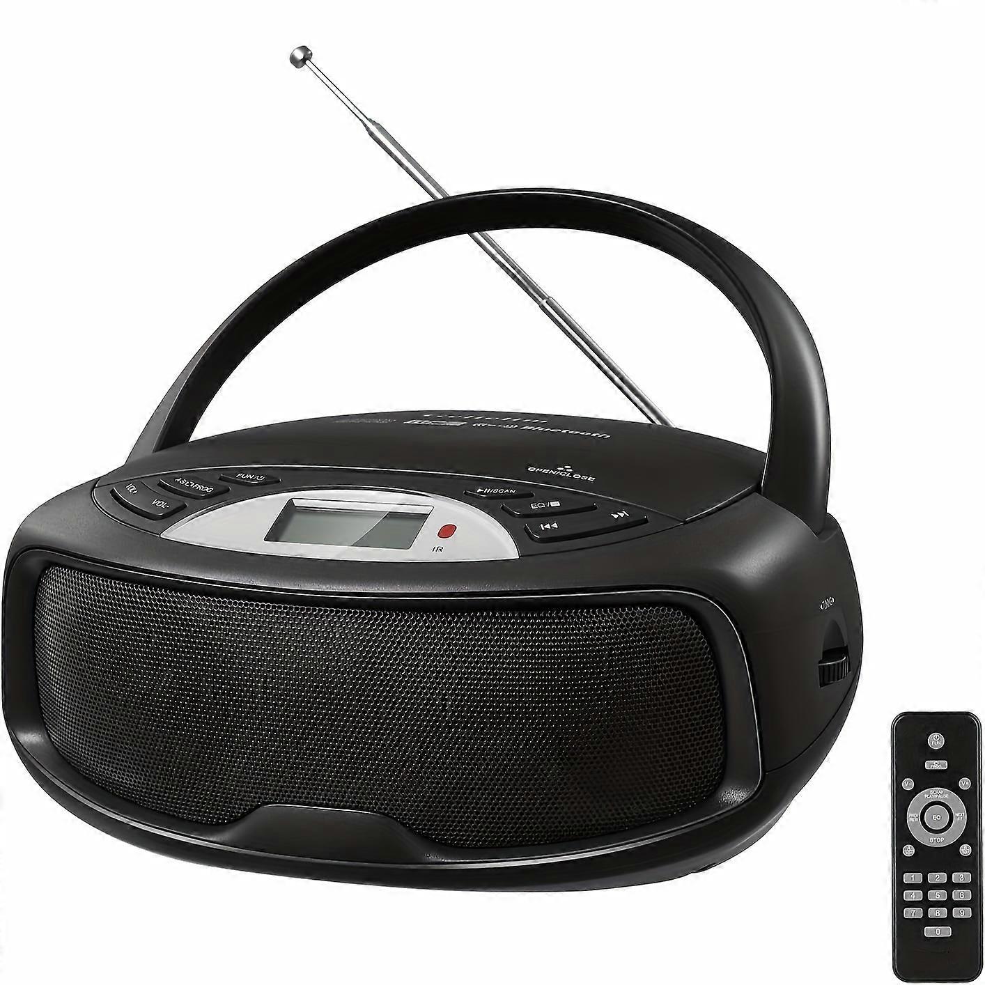Portable CD Boombox With Remote, FM Stereo Sound System, Wireless, Karaoke, Playback CD/MP 3, Front Aux-in Port, Headphone Jack, Tiny Body, LCD Displa
