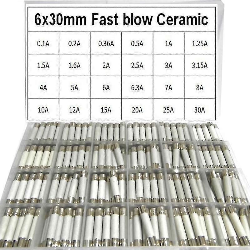 Ceramic Fuse 24 Values 6x30 0.1a 0.5a 1a 1.5a 2a 2.5a 3a 3.15a 4a 5a 6a-30a