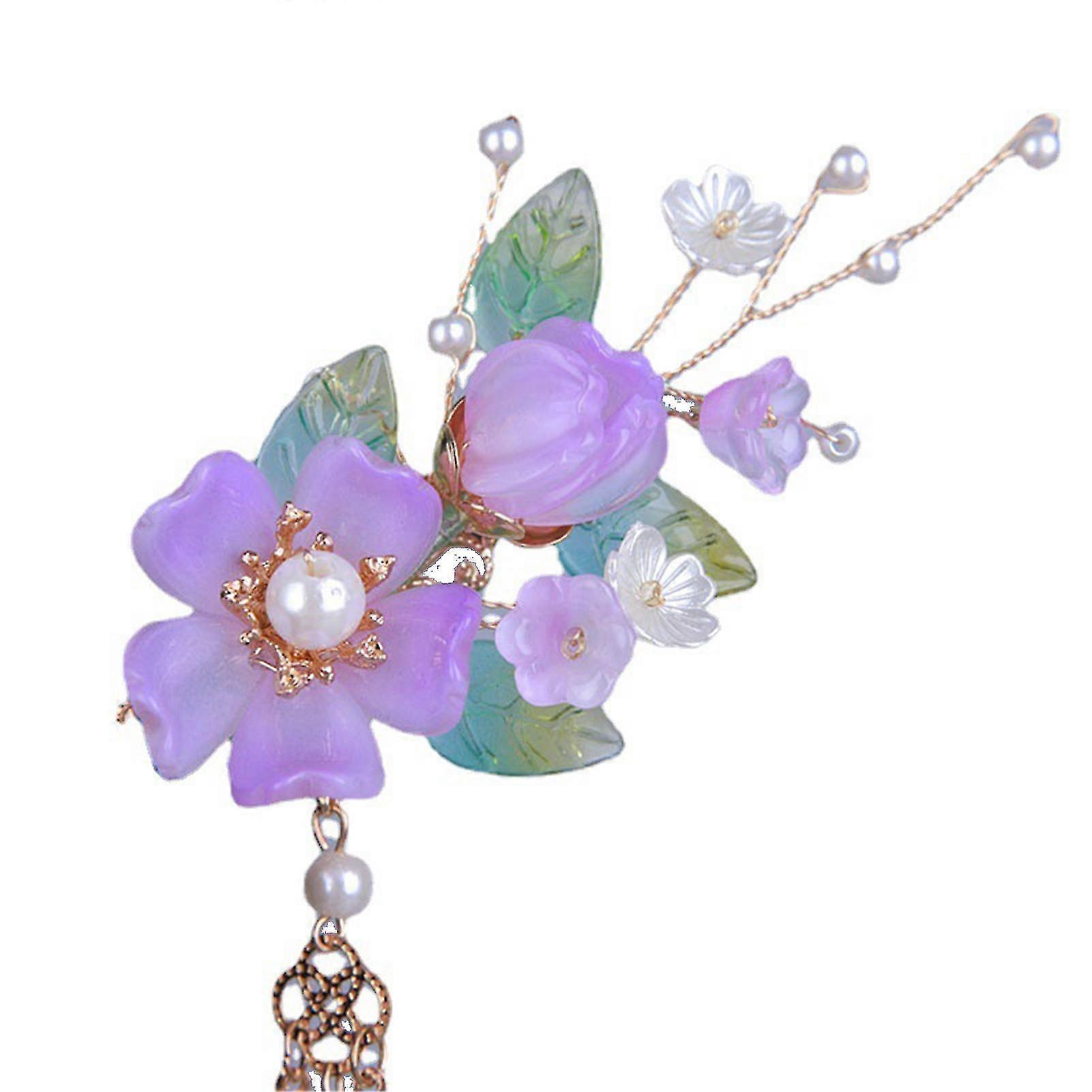 Chinese Style Purple Glazed Flowers Hair Clips Flowers Pearl Retro Hanfu Weaving Jewelry For Wedding Banquet Party Cheongsam