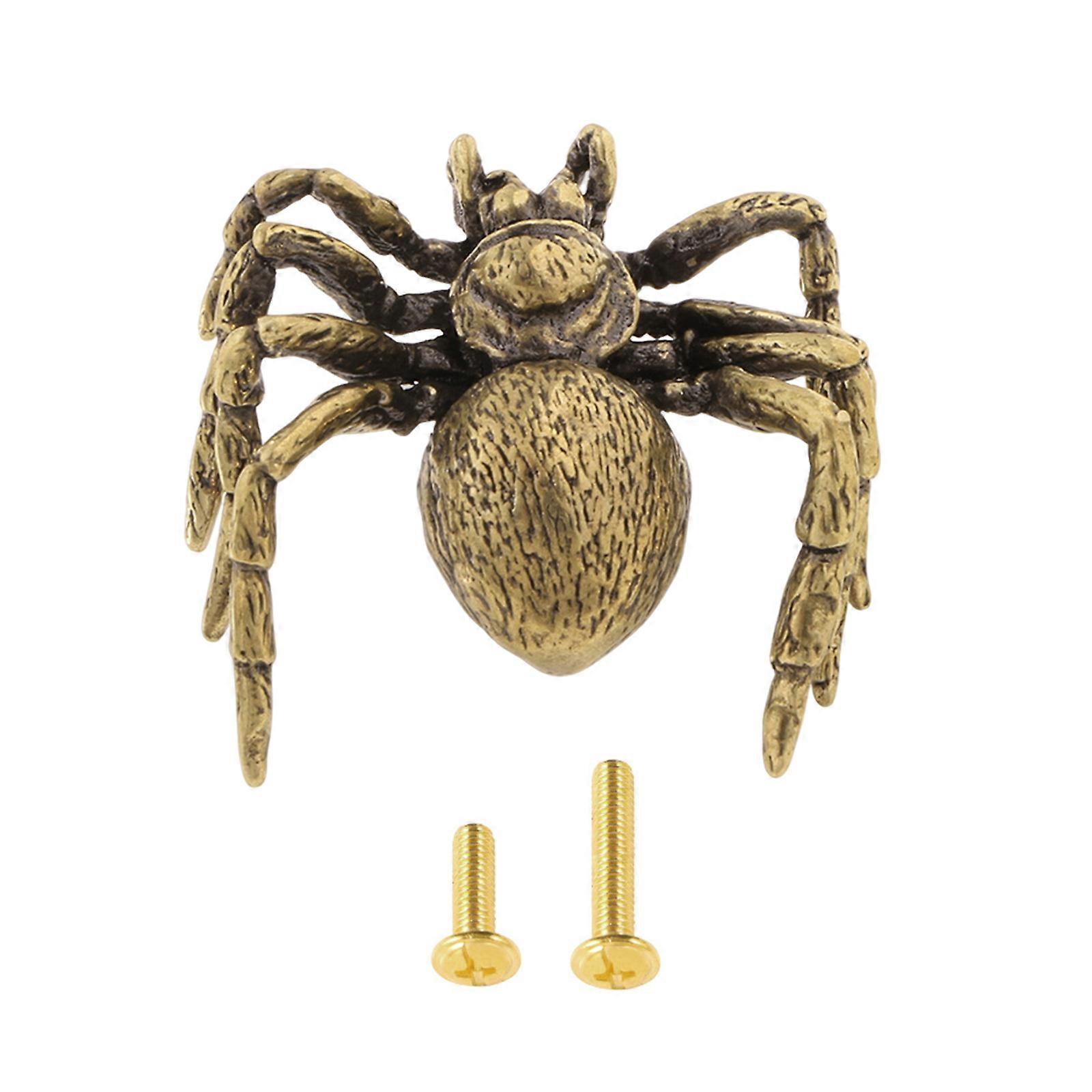 Child Safe Brasses Spiders Design Handle for Cabinet and Drawer Smooth Surfaces Easyly Install for Home Use Retros Look Aged Color