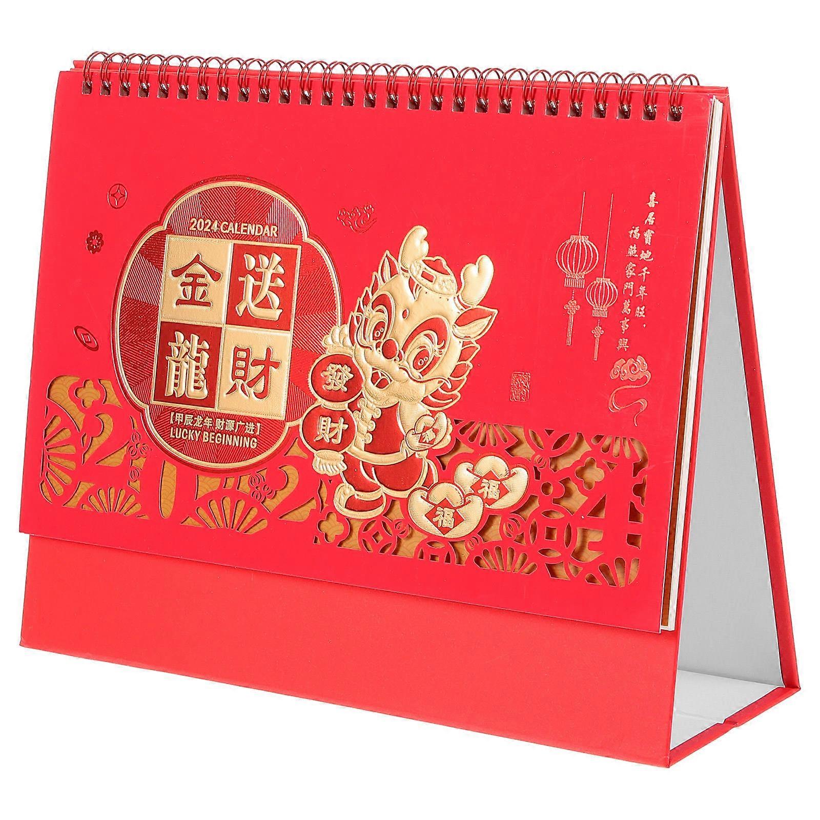 Chinese Style Freestanding Desktop Calendar 2024 Calendar Decorative Red Paper Note-taking 1Set