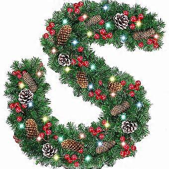 Christmas Light String 2.7m Glowing Red Berry Pine Cone PVC Lamp Strap for Xmas Tree Home Garden Front Door Wall Decoration Artificial Wreath Led