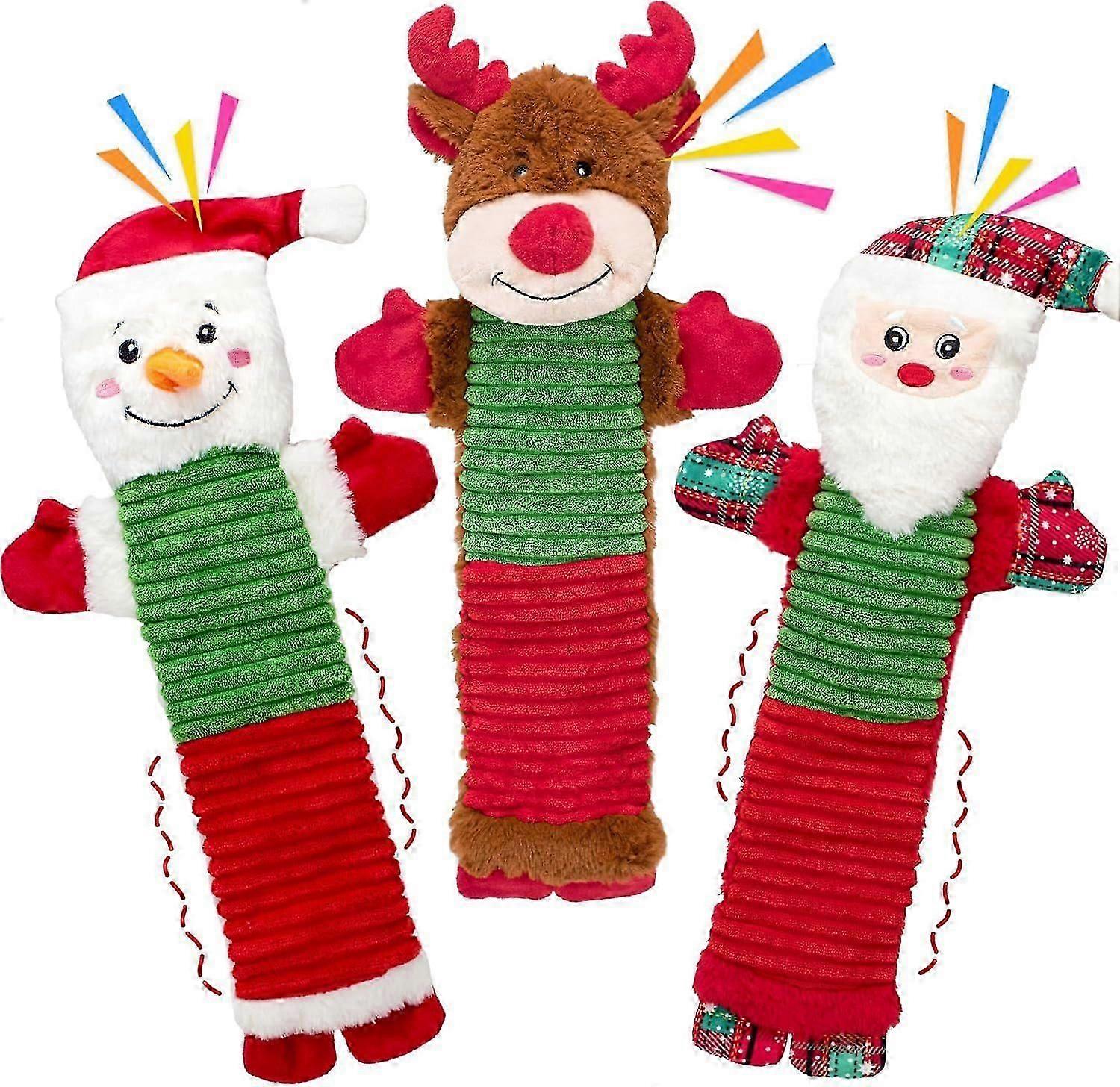 Christmas Squeaky Dog Toys with Crinkle Paper, No Stuffing Dog Toy for Large Dogs,Christmas Puppy Teething Toys to Keep Them Busy, Plush Interactive L