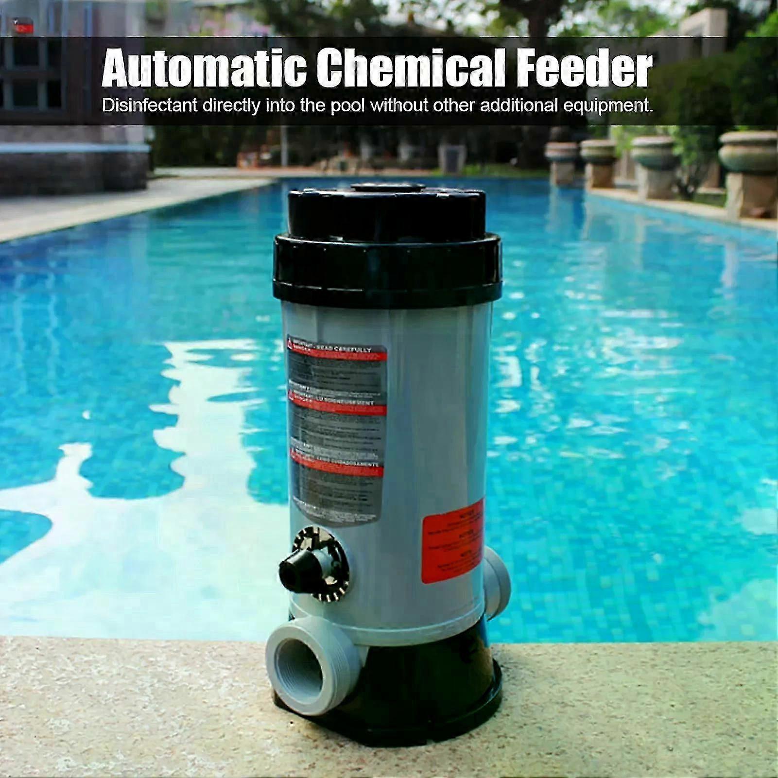 CL200 Automatic Chemical Feeder Chlorine Dispenser Chlorinator Swimming Pool Disinfection Equipment Feature: 1. Unique designed, no need for special exhaust equipment, no air leakage and sealing design. 2. Disinfectant directly into the pool without other additional equipment. 3. To prevent overdosing require completely closed control valve and builtin check valve. 4. Full automatic low water level designed: When the pump stops working, the water level is automatically lowered to avoid soaking the chlorine pellets and prolonging the service life of the chlorine pellets. 5. Made of high quality environmental friendly PVC material, corrosionproof, sturdy and durable. Specification: Condition: New Item Type: Automatic Chemical Feeder Material: Environmental Friendly PVC Color: As shown in the picture Size: Approx.38.5x22.5cm / 15.2x8.9in Capacity: 9L External Thread: 7cm/2.76 in Internal Thread: 4.6cm/1.81 in Weight: Approx.1800g/63.5oz Package List: 1 x Automatic Chemical Feeder 1 x Instruction Manual Note: 1. Please allow 1-2cm error due to manual measurement. Thanks for your understanding. 2. Monitors are not calibrated same, item color displayed in photos may be showing slightly different from the real object. Please take the real one as standard. _x000D_ _x000D_