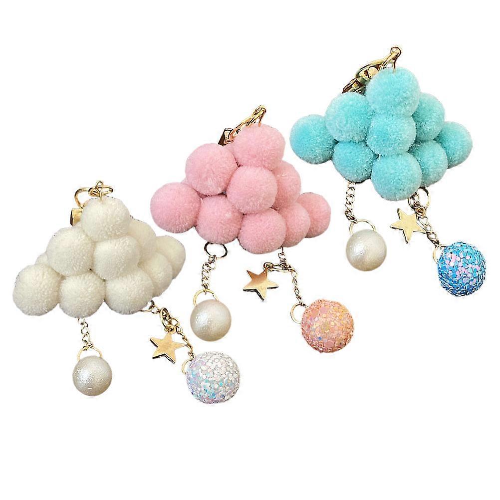 Cloud Keychain Plush Ball Key Chain for Decoration 3Pcs Assorted Color Pendant