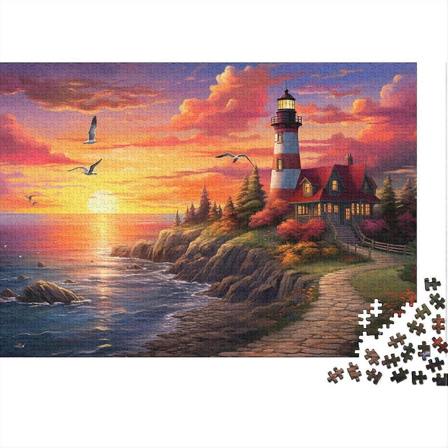 Coastal Lighthouses Jigsaw Puzzles for Adults Wooden Sea Scenery Puzzle with Precise Interlocking Design Puzzles Unique Family Games for Toddler Child