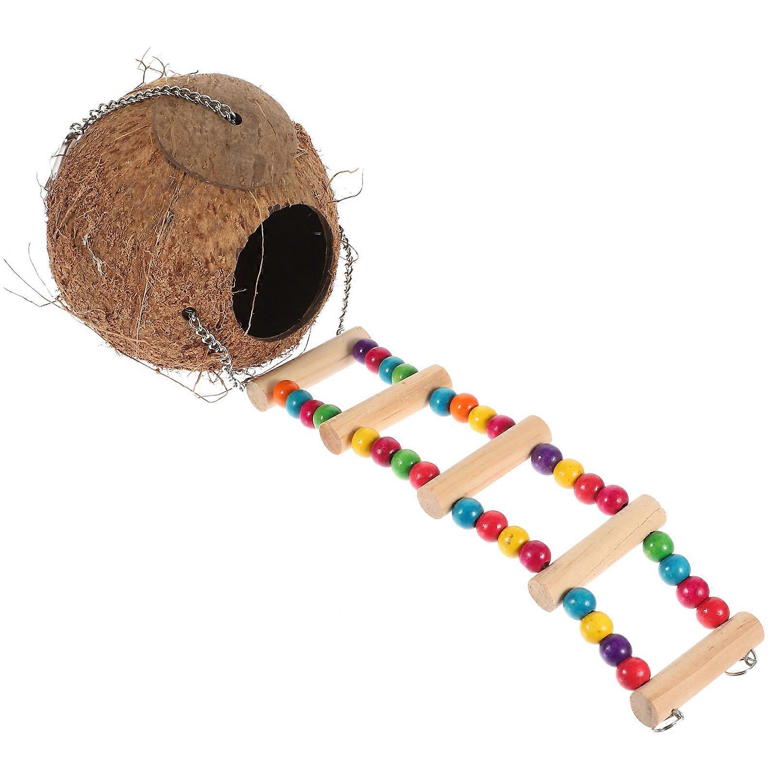 Coconut Reptile House Hanging Nest with Ladder for Resting 5Pcs Pack