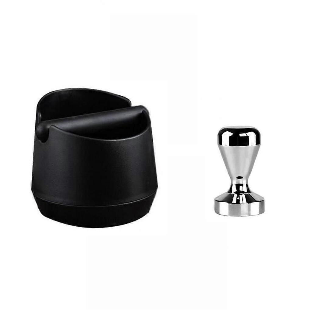 Coffee Knock Box Espresso Grinds Tamper + Waste Bin with Handle Black