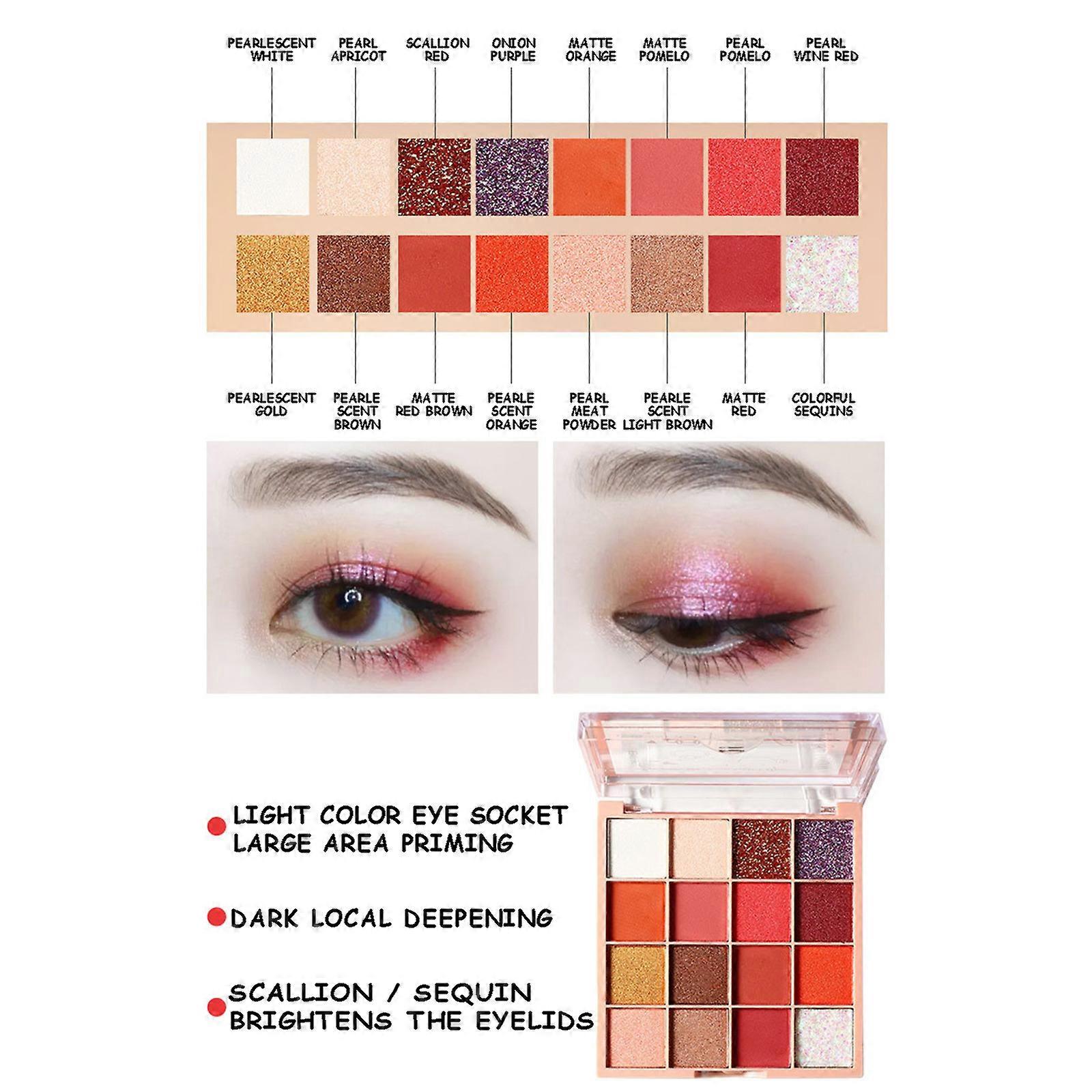 16 Color Sequin Eyeshadows Pearlescent Matte Easy To Color Eyeshadow Describe: [16-color eyeshadow] multiple textures,. Including matte, pearl, polarized, glitter [Long-lasting Waterproof] The wide color with high pigmentation and velvety powder can be easily layered on the eyes. It can also make your eyes look like they can last all day. [Easy to use] A of and matte eyeshadows. The soft, blendable nature and easy-to-use eyeshadows make these eyeshadows popular with serious makeup artists and beginners. [How to use] Mix and match colors, apply the eye shadow brush to the eye area, and match the mascara and eyeliner perfectly. Product size: 12.5*9.5*1.5cm Package Included:1X16 color eyeshadow