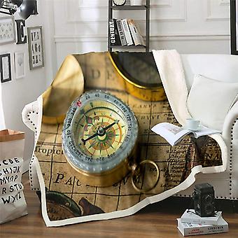 Compass Print Fleece Blanket for Sofa Couch Nautical Theme Sherpa Throw Blanket Decorative Retro World Map Plush Blanket Ocean Voyage Fuzzy Blanket Ki