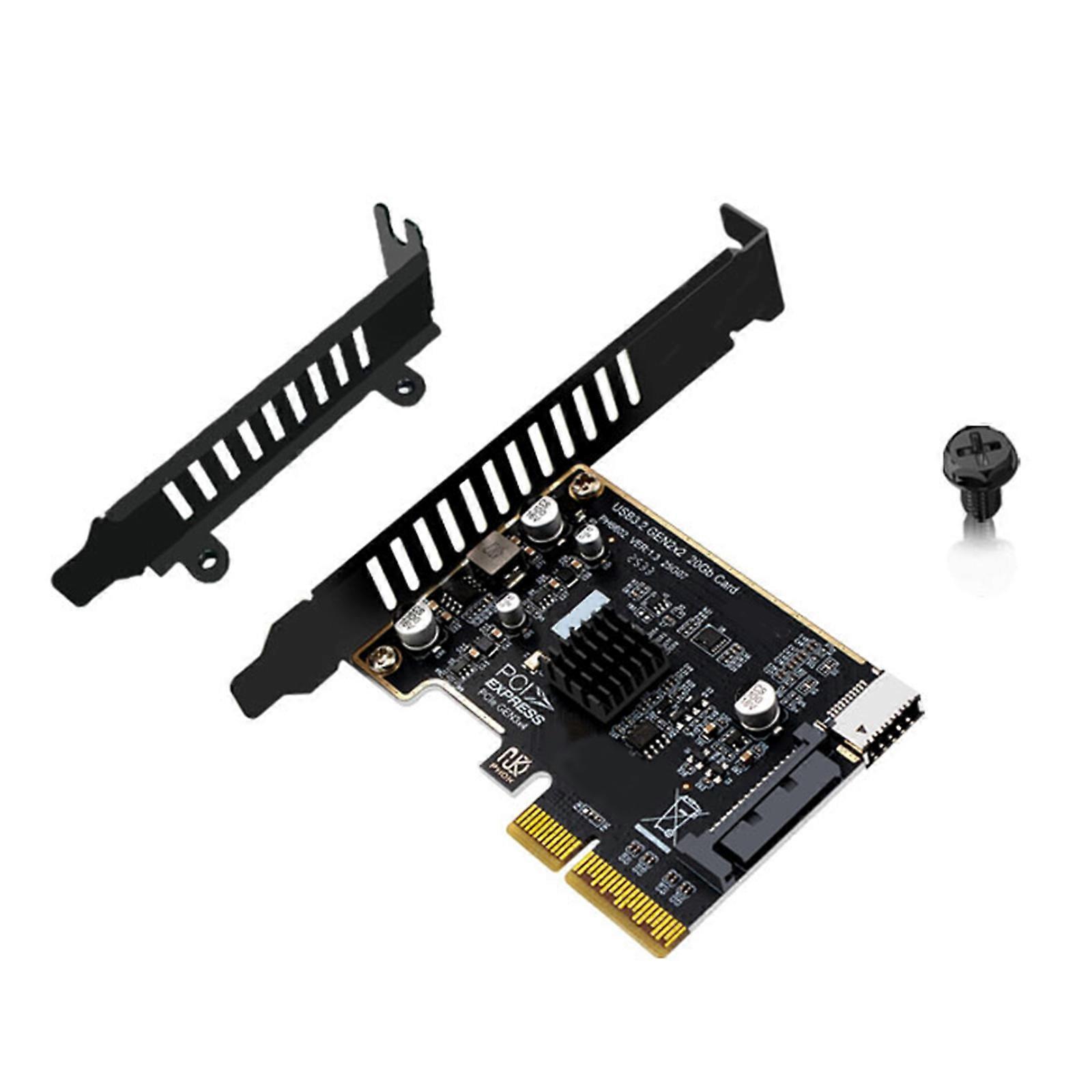 Features: PCIE 4x to USB 3.2 type e front panel is Fully Plugs Play compatible. Oxidation resistance, good conductivity, wear resistance. PCIExpress 4x to type e USB3.2 Gen 2 20Gbps expansion card for front panel type c. USB 3.2 GEN 2 front panel adapter is for multiple systems built-in driver. Adopt 4-layer circuit board, which has very strong anti-interferences ability. Effectively ensuring the stability of PCIE fast speed transmission, data integrity, impedance matching. Specifications: Product name: PCIE 4x to type e Adapter Heatsink: with 1 Heatsink Color: Black Input pciexpress 4x Output: type e USB3.2 GEN 2 20Gbps type e: Can convert to front panel TYPE C Size: approx. 120x80mm/4.72x3.15in Main Chip: ASM3242 Package Includes: 1PC PCIE 4x to type e 20Gbps Expansion Card 1PC Low Profile Bracket 1PC Screw note: Please allow 1-2cm errors due to manual measurement. Please allow for slight color differences due to different display resolution