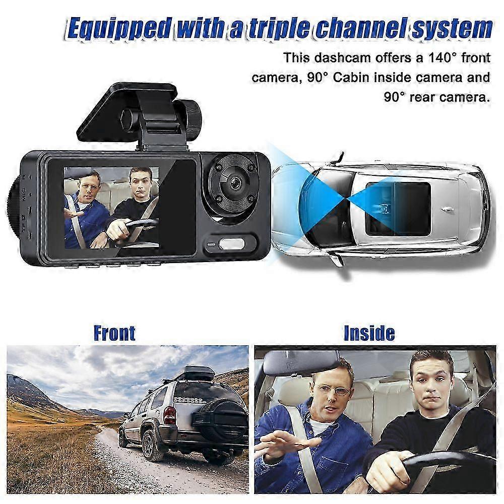 con 3 Cameras Dash Cam Multi-Language Clear Car Rearview Mirror Car Video Recording Camcorder Wide Angle Car Camera Recorder Auto Safety Driving Recor
