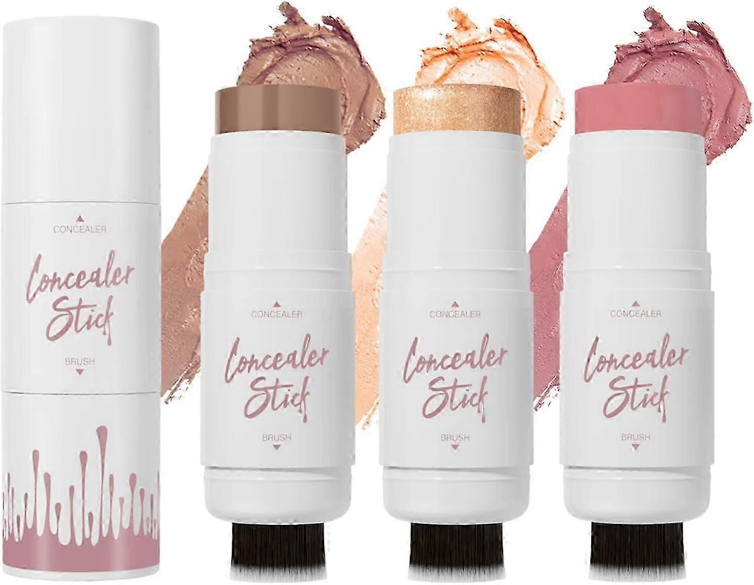 Contour Stick, Highlighter Makeup Stick, Blush Stick, Bronzer Stick, 3Pcs Contour Highlighter Blush Stick Kit with Brush for Flawless Look