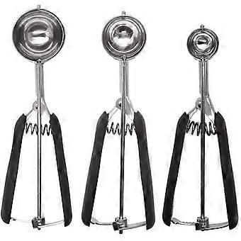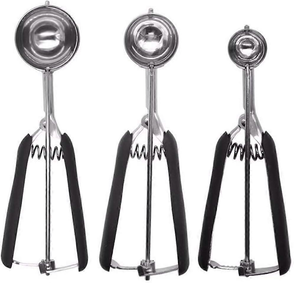 Cookie Scoop Set of 3pcs, Stainless Steel Ice Cream Scoop Ball Maker Set with Release Trigger Anti-Skid