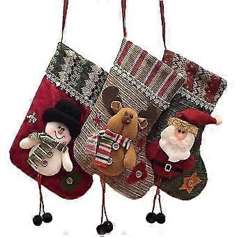 3kpl joulupukin joulusukkia, juhlavia sukkakoristeita joulukuusen lahjanvaihtoon