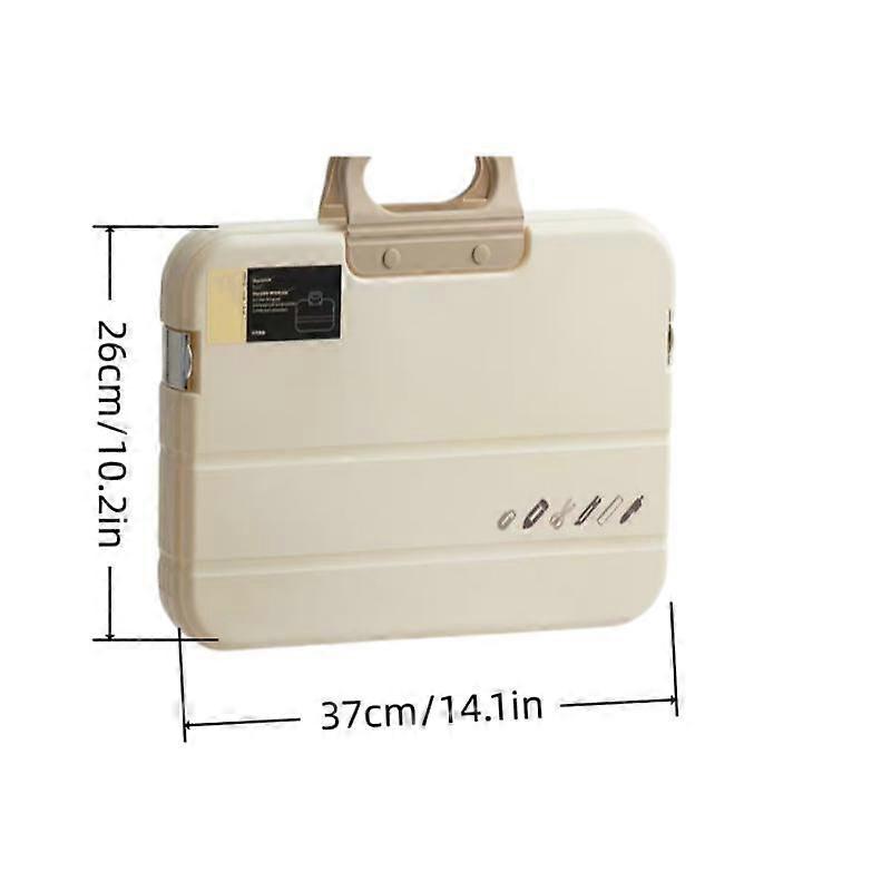 Cream Handheld Briefcase Document Bag Large Capacity, Student Carrying Tote Storage Box for Files and Essentials