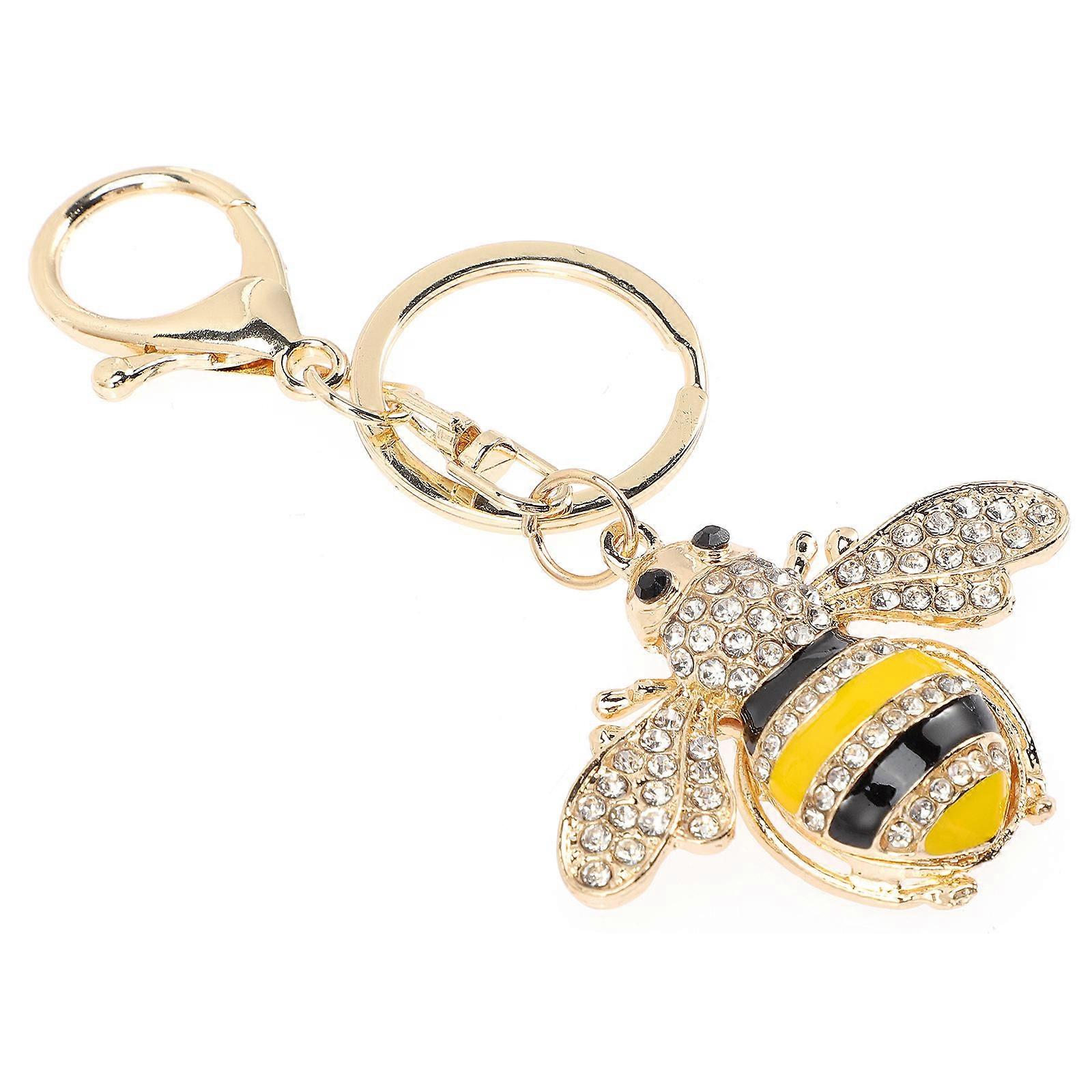 Cute Bee Shape Keychain Charm Decoration For Daily Use In Yellow Alloy And Rhinestone 1Set