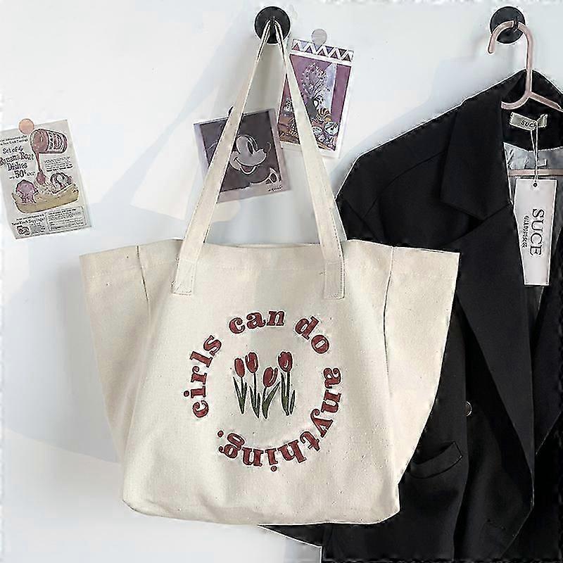 Cute color-blocked tulip canvas shoulder bag, simple and fresh style, perfect for students going to class or as a tote bag.