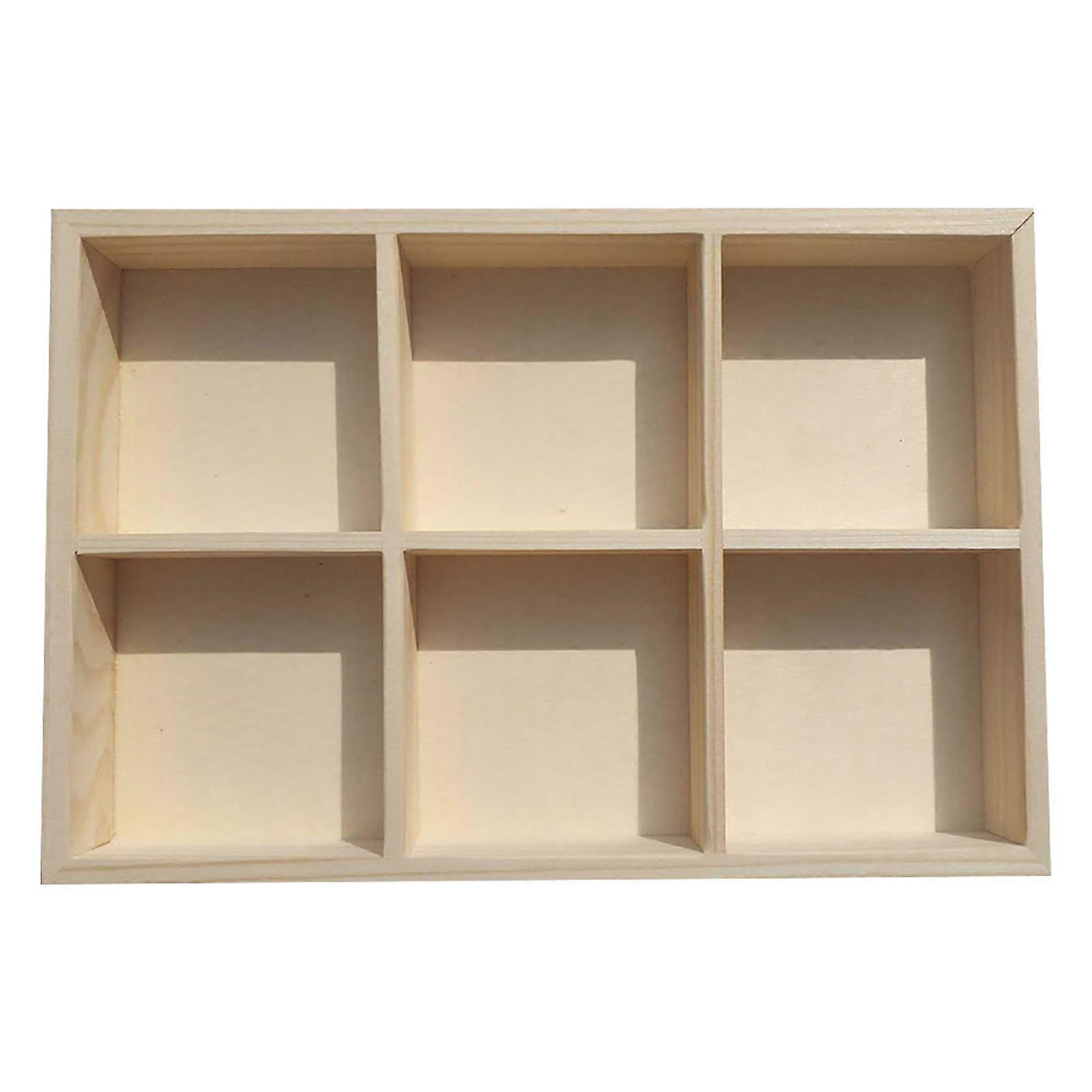 Cute Storage Box Wooden 6-Grid Pigment Storage Box Painters Pigment Container Khaki 9.4×6.3×1.2in 6-Grid Structure 1Set