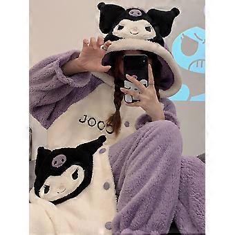 Cute Coral Fleece Pajamas Women Girl Thickened Kuromi Robe Sleepwear Winter Home Clothes Soft Comfort Plush Onesie Sleepwear