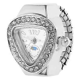 خاتم الإصبع ووتش الساطع حجر الراين الديكور الكوارتز خاتم ووتش للنساءفضي