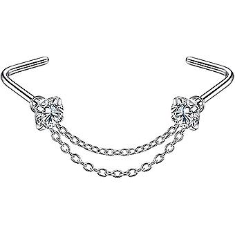 2 قطعة حلقة الأنف الهندية طبقة مزدوجة سلسلة الأنف ثقب سلسلة القلب ترصيع الأنف هيبوالرجينيك ضياء
