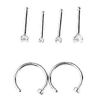 6 قطع على شكل C حلقة بار الزركون حجر الراين الأذن عشيق الأنف الحلزون أقراط الشفاه ثقب 20 قياس الجسم مجوهرات مجموعة