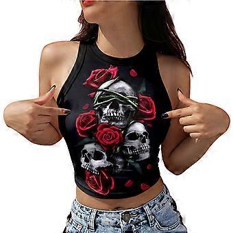 Womens Halloween Tank Top Ladies Rose Print Fitted Tank Top Womens Round Neck Vest Top Sleeveless T-Shirt Halloween Party Skull Printed Costume