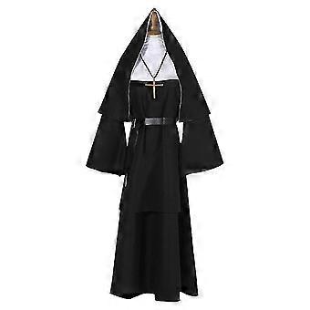 25-26 Elokuva Nunna Valak Cosplay-asu Loihtimisasu Pitkä mekko Papin kaavut Aikuisille Kauhu Aave Pelottava Halloween Karnevaali Naamiaisasu