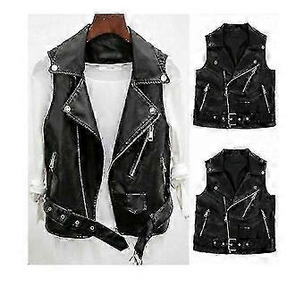2025 "Naisten keinonahkainen takaosa musta takki lyhyt hihaton takki" f26